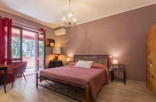 Le Camere sono dotate di bagno privato, wi-fi, tv, frigobar, asciugacapelli, kit asciugamani e, per il vostro relax, il terrazzino dotato di tavolino e poltroncine che affacciano sul parco.
