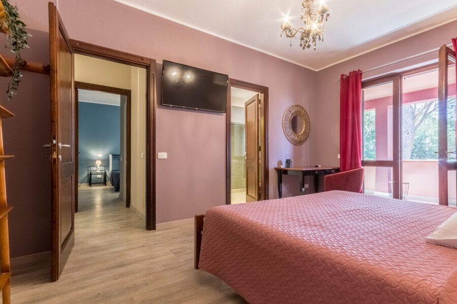 La Perla Blu' and 'La Perla Rosa' can meet the needs of couples or small families who wish to stay in this part of the Costa Cagliaritana. Located in the main body of the Villa, on the ground floor, these are two spacious and bright double rooms: one with an en suite bathroom, the other with a private bathroom adjoining its reference room.